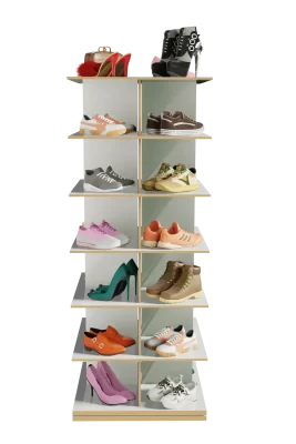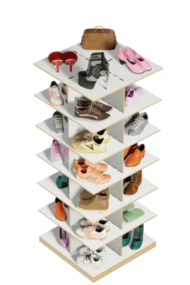 360° Dönen Ayakkabı Rafı, geniş kapasitesi ve zarif tasarımı ile evinizde düzeni ve şıklığı sağlar. Dayanıklı MDF malzemesi uzun ömürlü kullanım sunar ve montajı oldukça kolaydır.